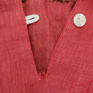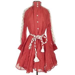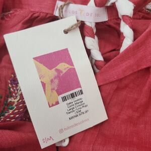 HILOS DE SOL Dalia Mexican embroidered linen lace belted red dress Size S M NEW