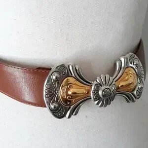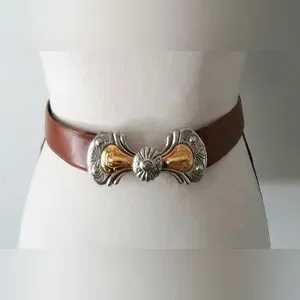 Brown with gold and silver metal buckle