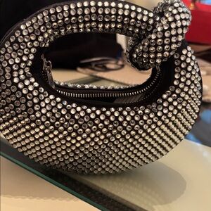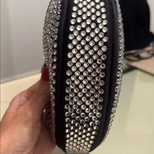 This stunning women's bag features a luxurious black base adorned with sparkling silver crystals. Perfect for adding a touch of glamour to any outfit.only worn once /Final Sale like new