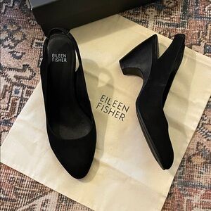 Chic black slingback heels by Eileen Fisher. Perfect for versatile styling.