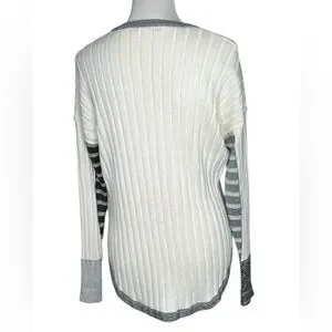 Zaket & Plover Cashmere Blend Ribbed Sweater Cream Grey Soft Long sz S/M