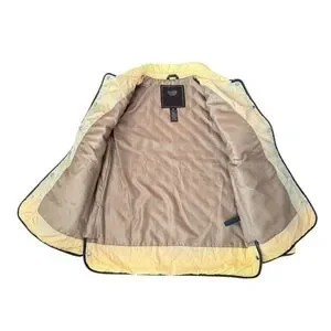 Has some discoloration. Towards middle of the jacket seems that it could be from the inner liner . See photos and video