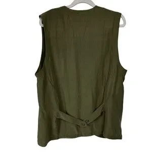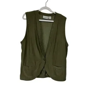Liz Claiborne 100% Silk Vest Olive Green Marked Size S But Easily Fits Size M