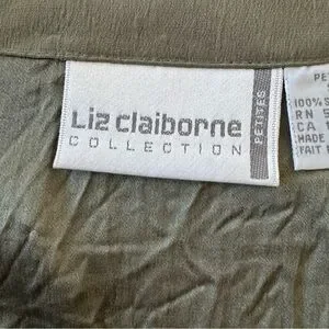 Preowned good condition. No stains rips or snags. PLEASE SEE photos for measurements. The Liz Claiborne 100% Silk Vest in Olive Green is a stylish and versatile addition to any woman's wardrobe. With its solid pattern, V-neckline, and button closure, this vest is perfect for a variety of occasions including travel, casual, and business. Made of luxurious silk and featuring an adjustable back strap, this vest offers a comfortable and flattering fit. The olive green color adds a touch of sophistication, making it a great choice for all seasons.