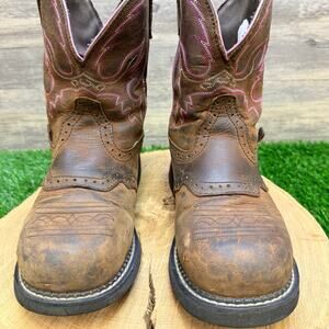 Justin Women - Size 9B - Gypsy Brown / Pink Steel Toe Cowboy Boots WKL9980