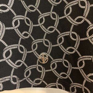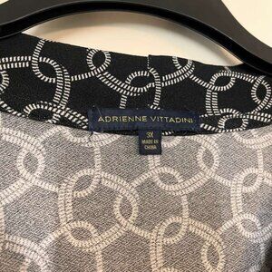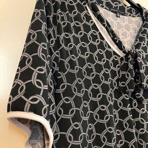 Adrienne Vittadini. Size 3X (Plus Size) Black with white chain print. Short sleeve tie-neck blouse. 95% Polyester, 5% Spandex