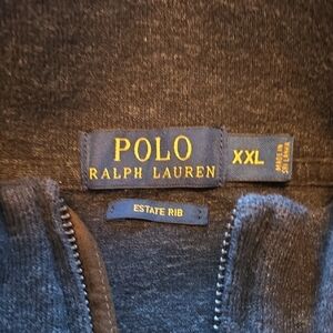 Elegant charcoal sweater with quarter-zip. Features classic Ralph Lauren style.