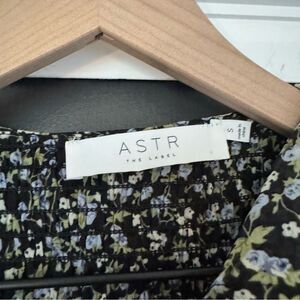 ASTR The Label Black Blue Ditsy Floral Peasant Preppy Chiffon Ruffle Top sz S