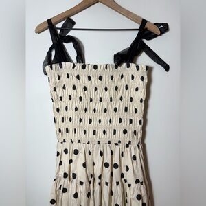 En Saison 100% Cotton Ivory & Black Polka Dot Tiered Midi Dress Sz L New