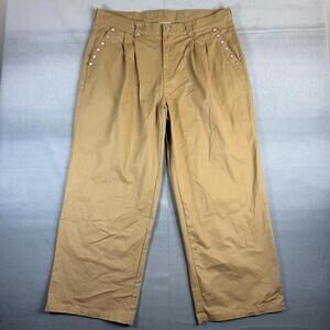 Loiter Pants Mens 38 Khaki Baggy Wide Leg Studded Pleated Chino Streetwear
