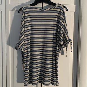 Democracy Blue & Cream Cold Shoulder Top 🆕