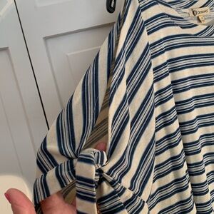 This relaxed top from Democracy features a stylish cold shoulder design in a soothing blue and cream palette. The short sleeves and comfortable fit make it perfect for casual outings or lounging at home. Crafted with attention to detail, this top combines effortless style with everyday comfort.