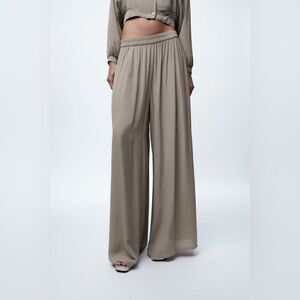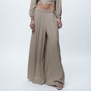 Mid-rise pants made of viscose. Elastic waist. Wide leg.