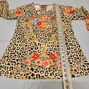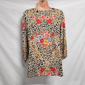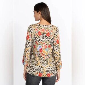 Johnny Was Cheetah Puff Sleeve Top Blouse Women Size S Floral