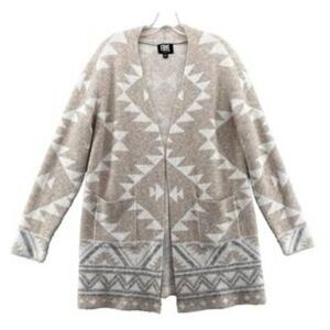 Frye Tan and White Cardigan Sweater with Geometric Design