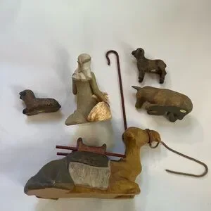 * Five hand-painted resin figures, tallest is 7” h. Includes shepherd, two sheep, camel snd and a donkey (I'm throwing him into the set)