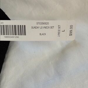 NWT Soma SUNDAY Black V-Neck Long Sleeve Top and Bottoms