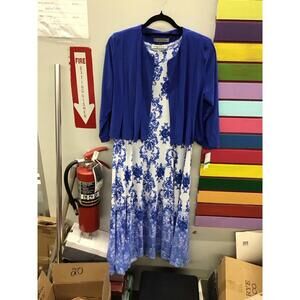 Danny and Nicole 2 piece jacket dress cobalt/ivory size Large