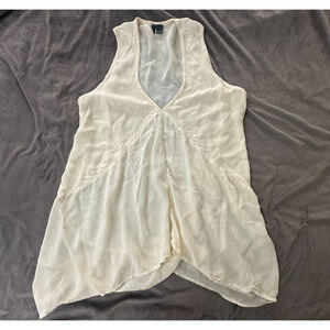 LEFT OF CENTER Tunic Womens Large Cream Sleeveless Asymmetric Flowy Lagenlook