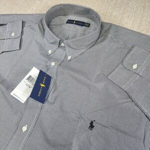 NEW Polo Ralph Lauren Shirt Men 4XB Poplin Button Down Black White Micro Check