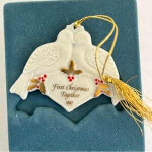 Lenox First Christmas Together 1993 Pair Doves Love Porcelain In Box Ornament