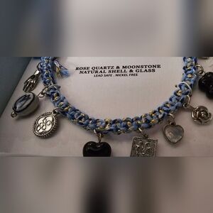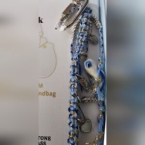 Stylish bracelet with silver and blue charms. Perfect for any outfit. Adds a personal touch.