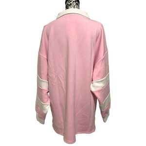Stylish pink long sleeve shirt with white stripes. Features a classic collar and relaxed fit.