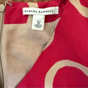 Banana Republic Size 16 Tall Pink & Tan Geometric Circles Silk Blend Dress