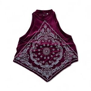 EUC Free People Red Velvet bandana bling top WhimsiGoth Witchy Sz Small