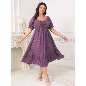 Plus Size Summer Dress Polish Dot Puff Short Sleeve Smocked Ruffle Casual Midi