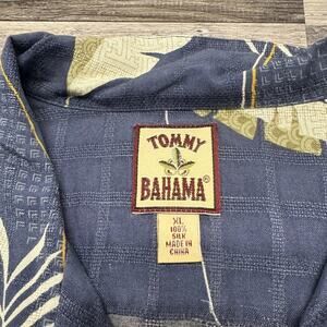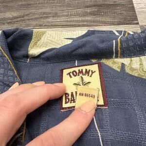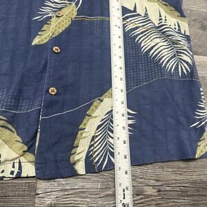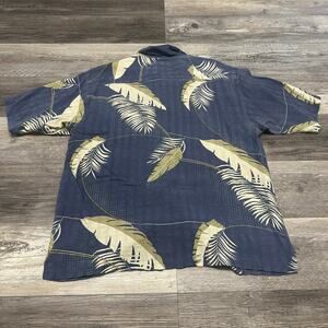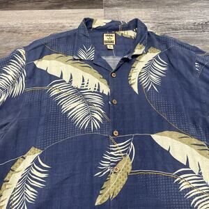 Tommy Bahama Shirt Blue Mens XL 100% Silk Palm Leaf Hawaiian Button Up Loop