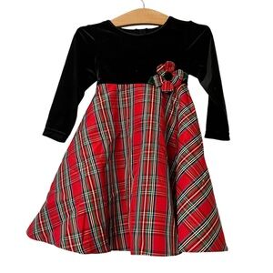 Good lad toddler girls black velvet plaid taffeta holiday dress sz 2T