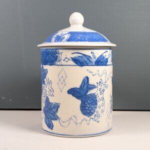 Handmade blue and white ceramic lidded tea cup, tea or coffee mug