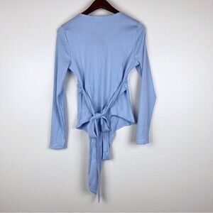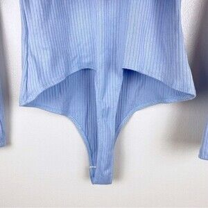 Le Lis Collection Baby Blue V-Neck Long Sleeve Thong Bodysuit Size L NWT
