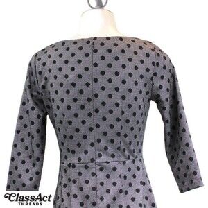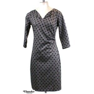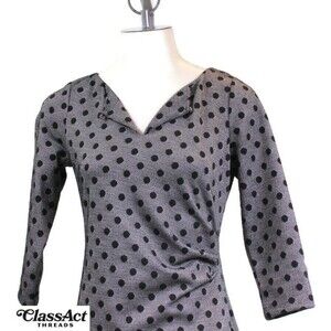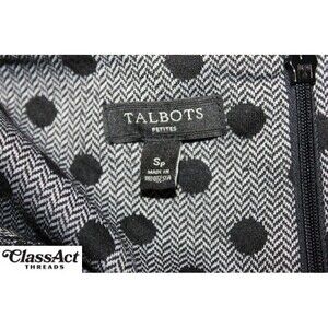 Talbots Dress polka dot Faux Wrap Black 3/4 Sleeve Back Zipper Petite Small