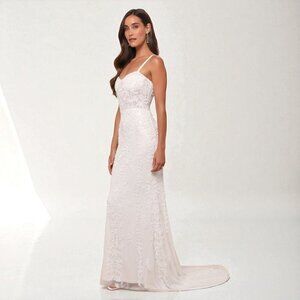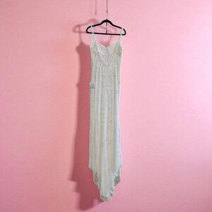 Lulus Momentous Love White Beaded Bustier Mesh Mermaid Maxi Dress Size Large
