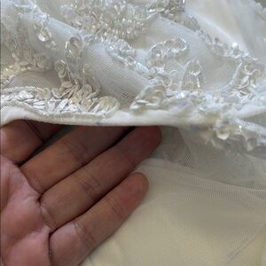i see some pin marks (?) on the dress. i tried to take as many photos as I could but I hit the photo limit. i didn't see the marks until I was wrapping the item up. Doesn't seem to be on the underdress just the overlay.