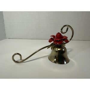 Candle Snuffer Bell 4" Red Rose Floral Flower Valentine Gold Tone