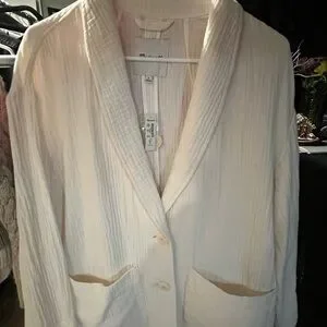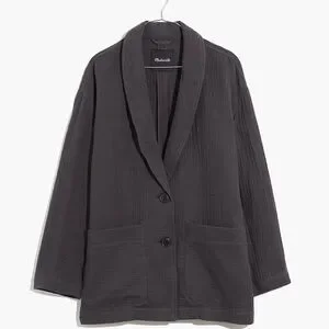 With a shawl collar, dropped sleeves and oversized patch pockets, this slouchy blazer gives a nod to the unlined, unstructured jackets of the '80s. Made of our supersoft Lightspun double gauze, it's comfy enough to wear at home with the matching shorts or pants (and you won't miss your hoodie for a second).