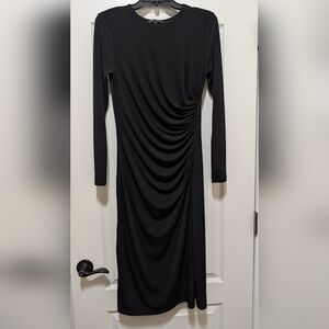 Banana Republic Knit Shirred Midi Dress, Elegant, Black, Long Sleeve, Size Small