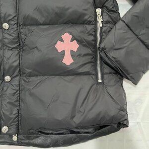 Chrome Hearts Black Down Jacket With Pink Cross Patch