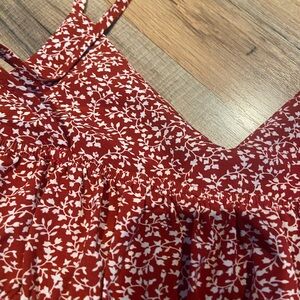 ONLY WORN ONCE!! In really good condition! Red colored tank top with a floral design all over it. The tank top is very flowy and can be paired nicely with a pair of jeans! This tank top is super cute!