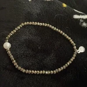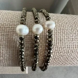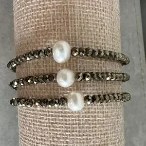 Beautiful pearl and pyrite bracelets. Stretch to fit most sizes.