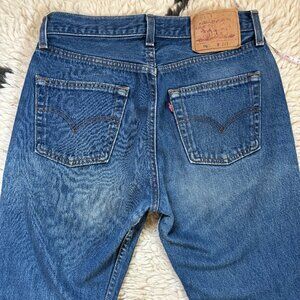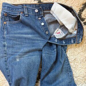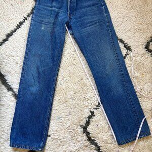 Incredible pair of Vintage Levi's 501s. Made in USA. Hemmed. See measurements. Also please note that they measure smaller than the labeled 29 and are labeled here as such. Some marks, wear, beautiful fading, discoloration, lighter/darker spots, thinning, etc. Reasonable offers only. Do not buy if you don't like imperfect nature of vintage Levi's.