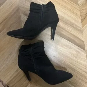 Chic black heeled boots by Soda. Sleek design with a modern touch. Ideal for elevating any outfit. ; fergie brand and soda brand (size 7.5 soda and fergie is size 8)