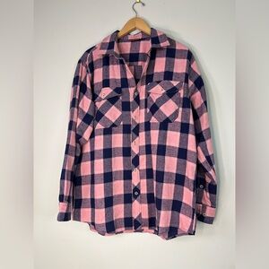 Flannel Pink and Blue Plaid Button-Up Shirt Oversized
