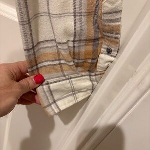 PHILADELPHIA Eagles Stylish plaid men's shirt featuring a classic brown, gray and white design. Embroidered logo and eagle on sleeve. Perfect for casual outings or game day!
