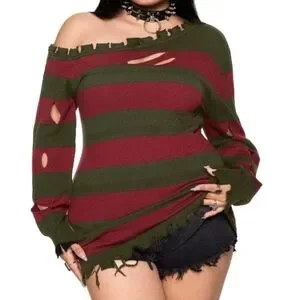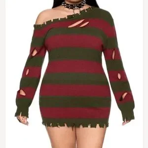 NWT Striped Off-Shoulder Freddy Krueger Inspired Striped Sweater Dress 🖤