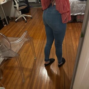 Chic light blue skinny jeans. Sleek and stylish fit. Perfect for casual outings.
