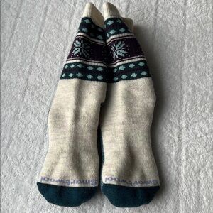 New no tag. Color: Moonbeam.Add a pop of personality to your casual style with SmartWool's Everyday Cozy Snowflake Dream socks, crafted from an odor-resistant, itch-free merino wool blend.